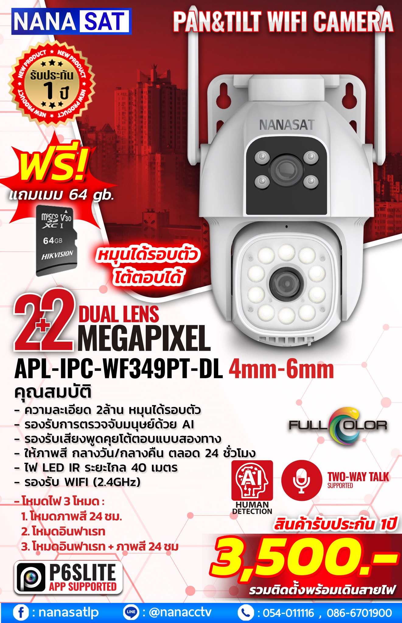 กล้องวงจรปิด 2 เลนส์ รุ่น APL-IPC-WF349PT-DL