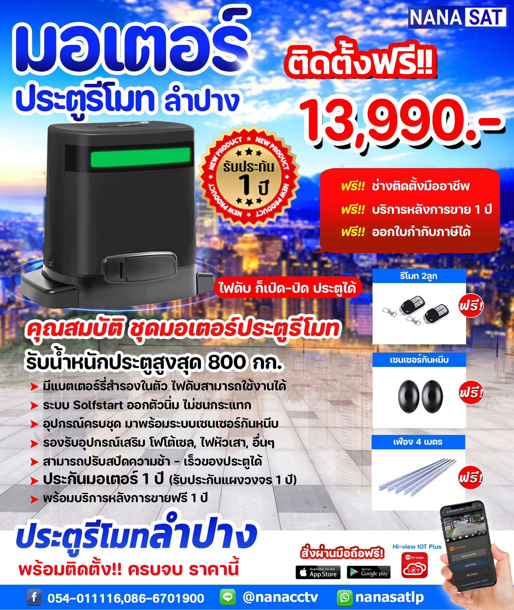 ชุด มอเตอร์ ประตูรีโมท ลำปาง พร้อมติดตั้ง ครบชุด ราคาถูก และดี มีประกันมอเตอร์ 5ปีเต็ม เปิด-ปิด ผ่านมือถือได้ สำรวจหน้างานฟรี ไม่มีค่าใช้จ่าย